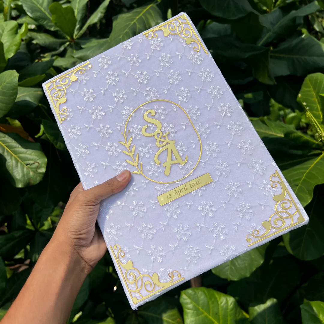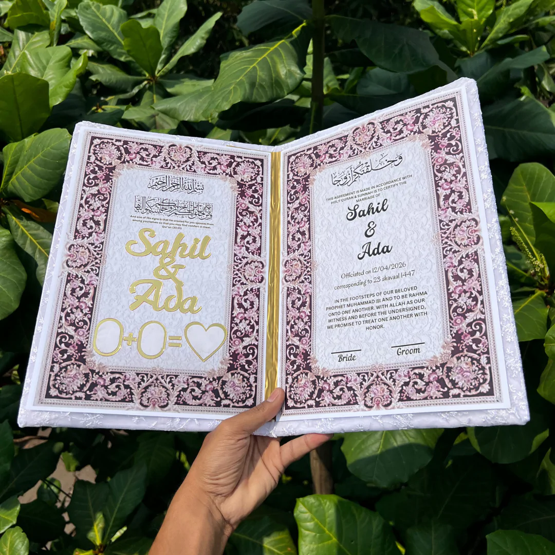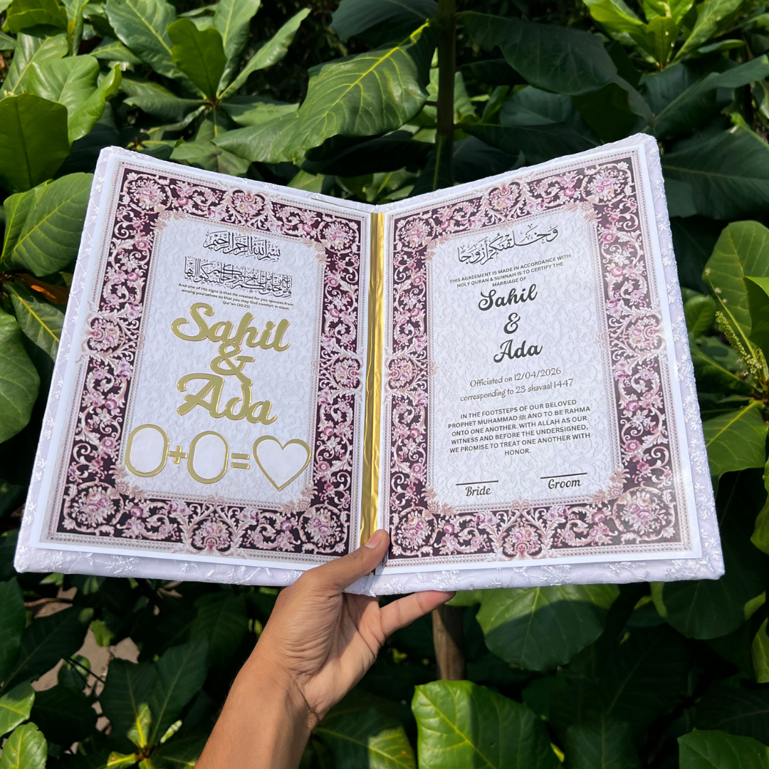 Our Customised Premium Nikahnama is beautifully crafted on luxurious white fabric, designed to preserve your special day in the most graceful way.
