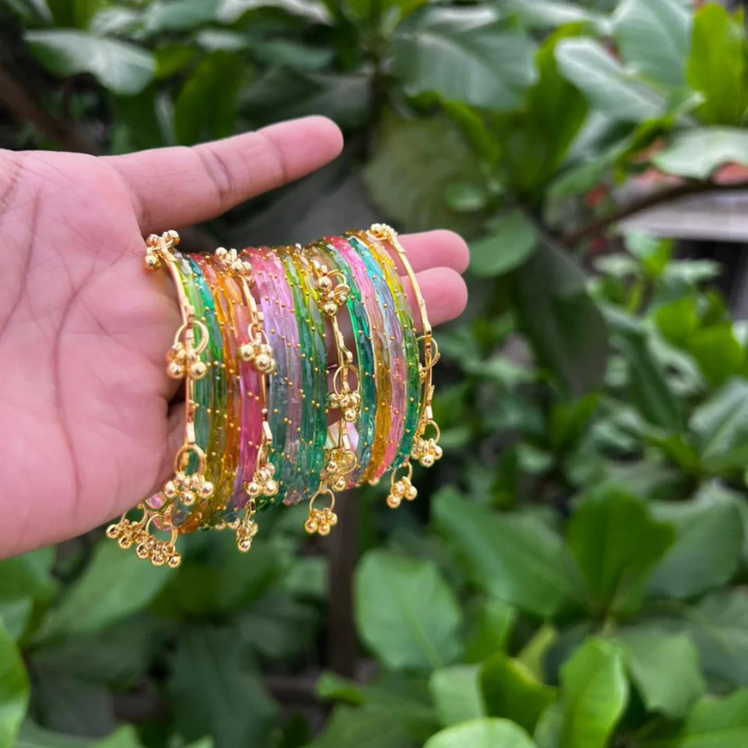 Kashmiri Ghunghroo Bangles Set | 16 Pieces Traditional Bangles – Rainbow multicolour