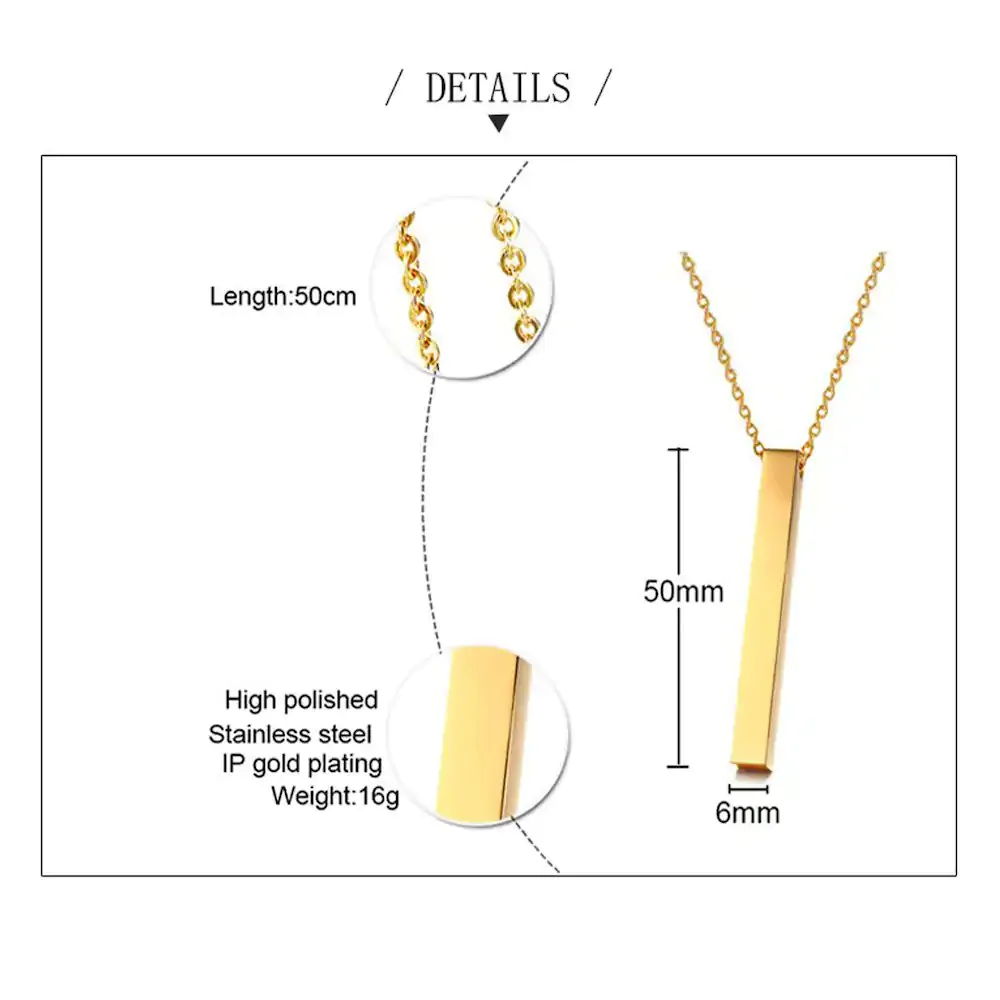 • Product – 1 Personalized Bar Pendant